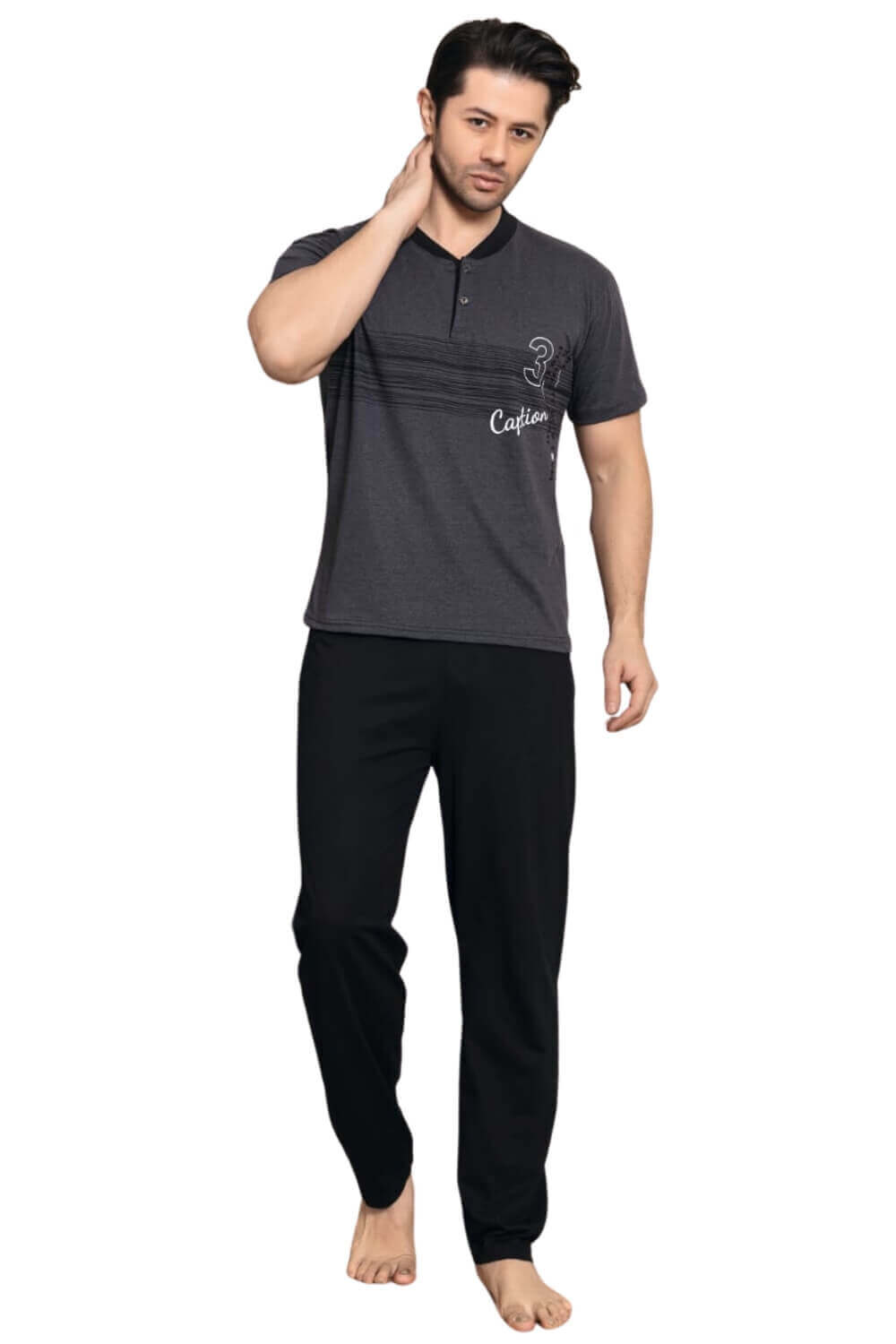 Ανδρική πιτζάμα ανοιξιάτικη φθινοπωρινή 35023 – ΑΝΘΡΑΚΙ, M