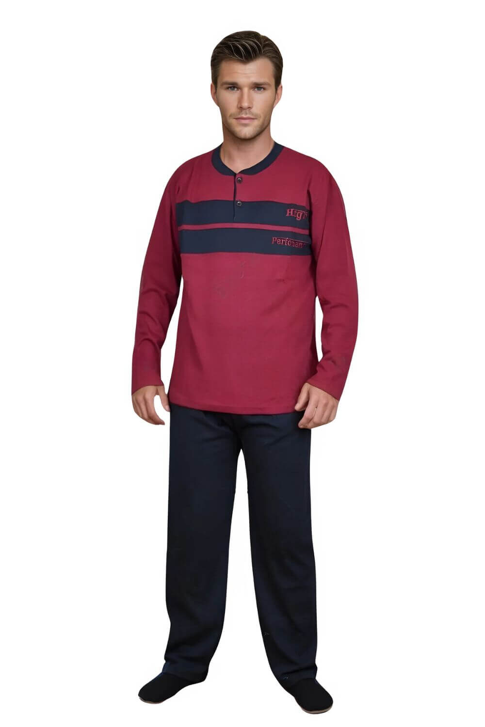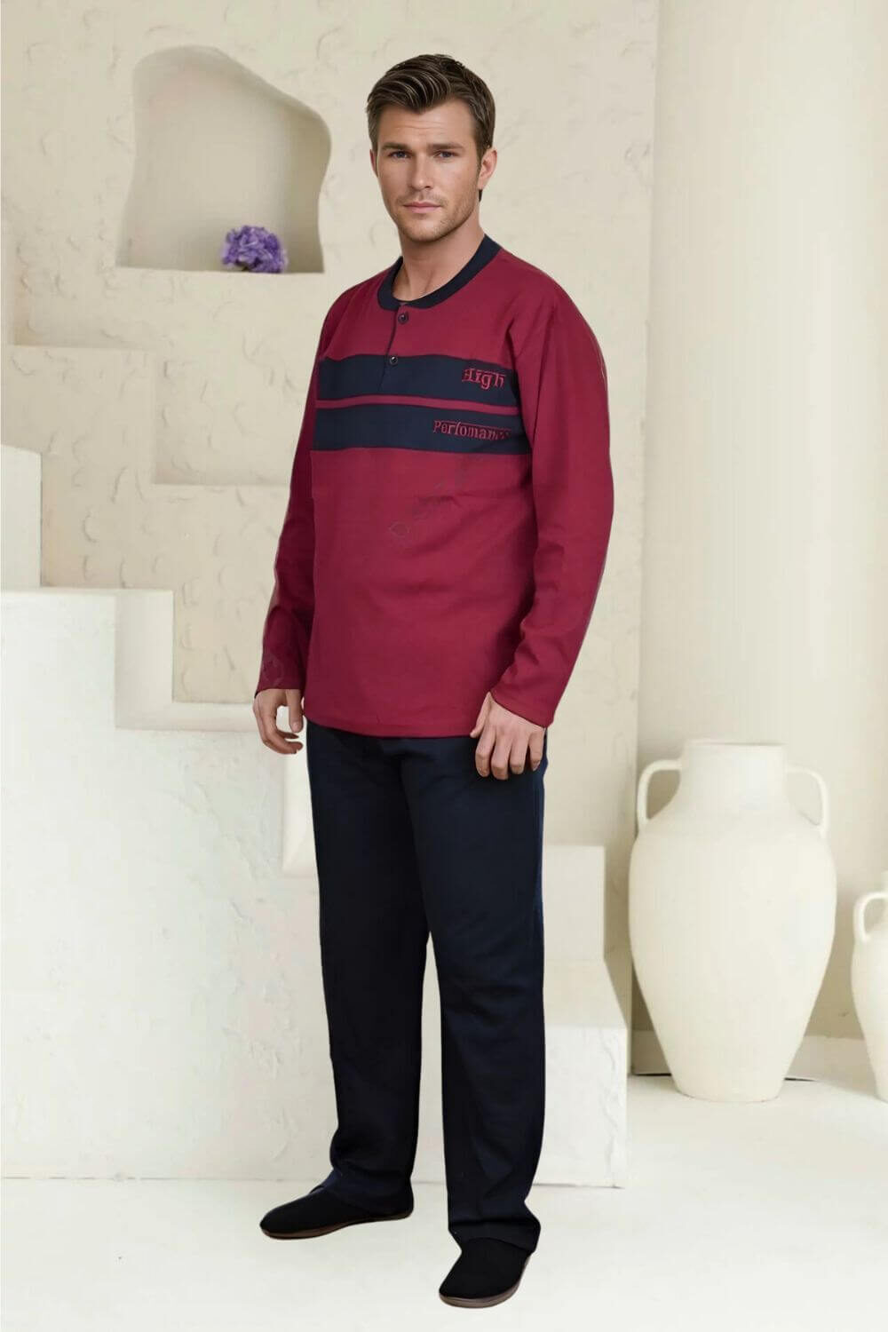 Ανδρική Πιτζάμα Βαμβακερή G0835 – ΜΠΟΡΝΤΟ, L