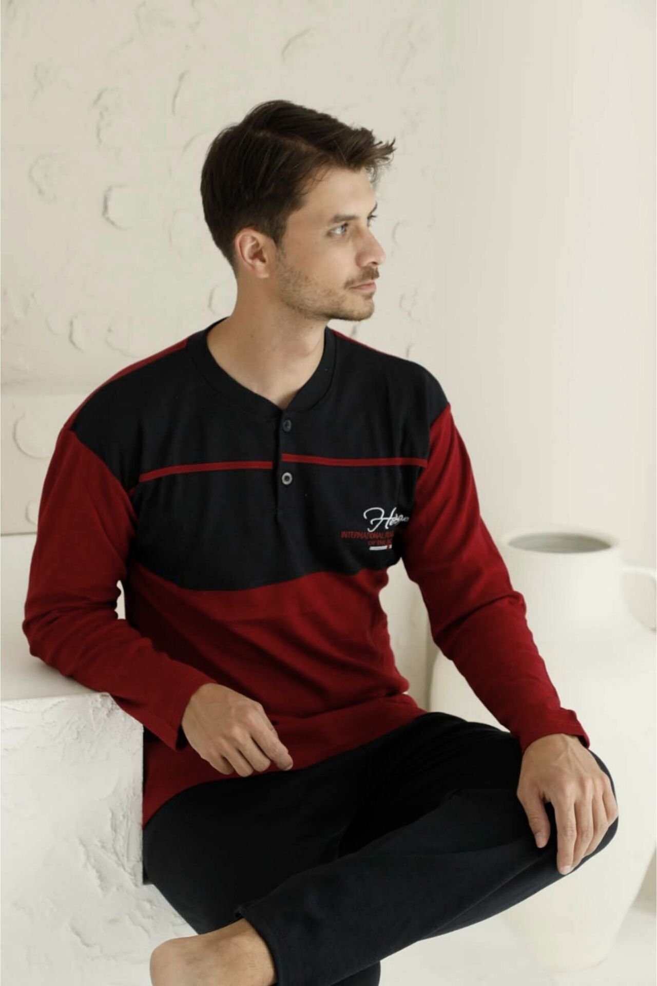 Ανδρική Πιτζάμα Βαμβακερή Q0825 – ΜΠΟΡΝΤΟ, M