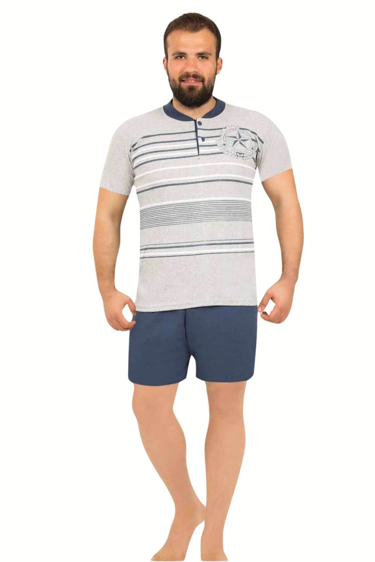 Ανδρική Πιτζάμα Σορτς Παντελόνι Κοντό Μανίκι S2075 – ΓΚΡΙ, M