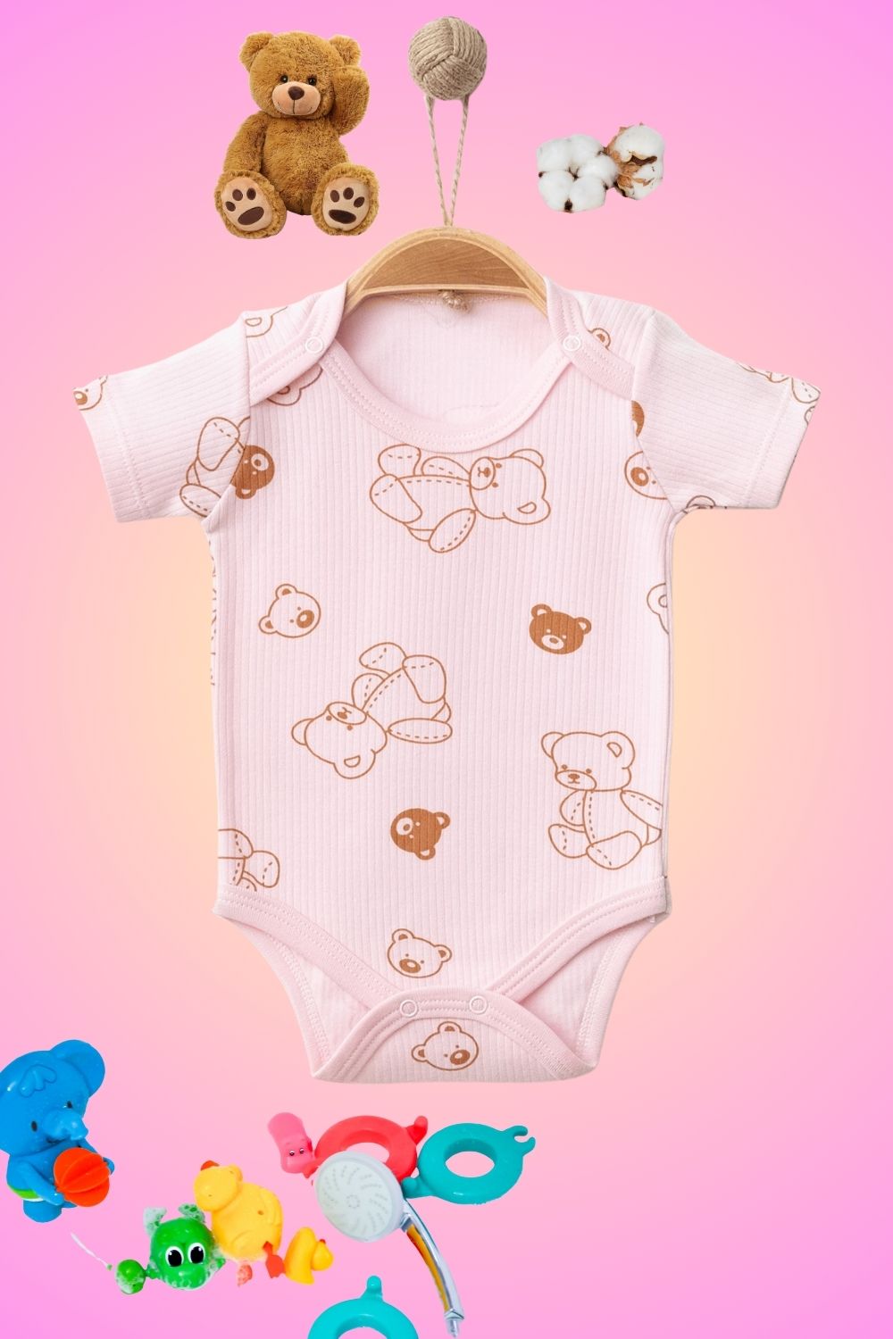 Βρεφικό Κορμάκι Κορίτσι Κοντομάνικο C2653 – ΡΟΖ, 6 Μηνών