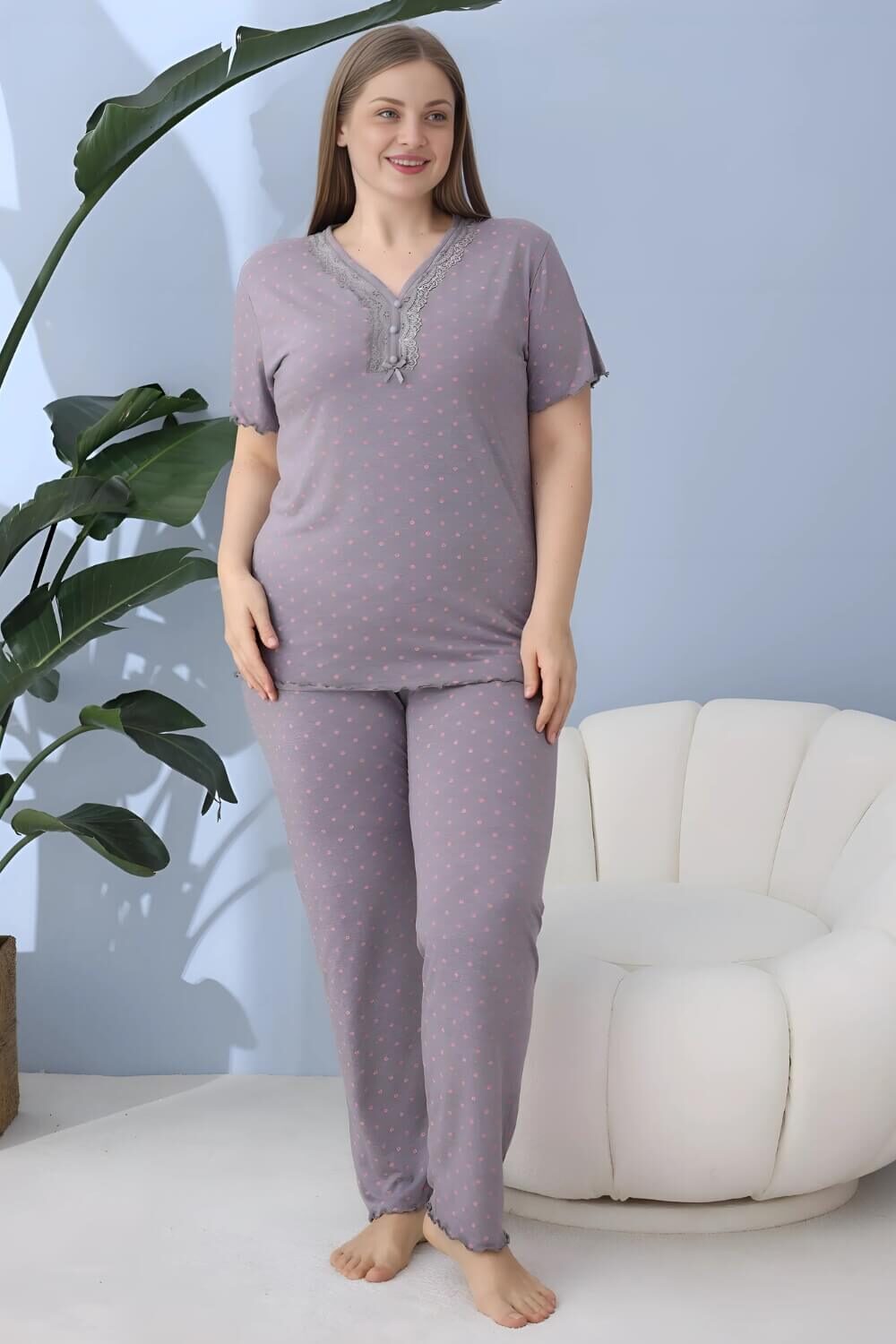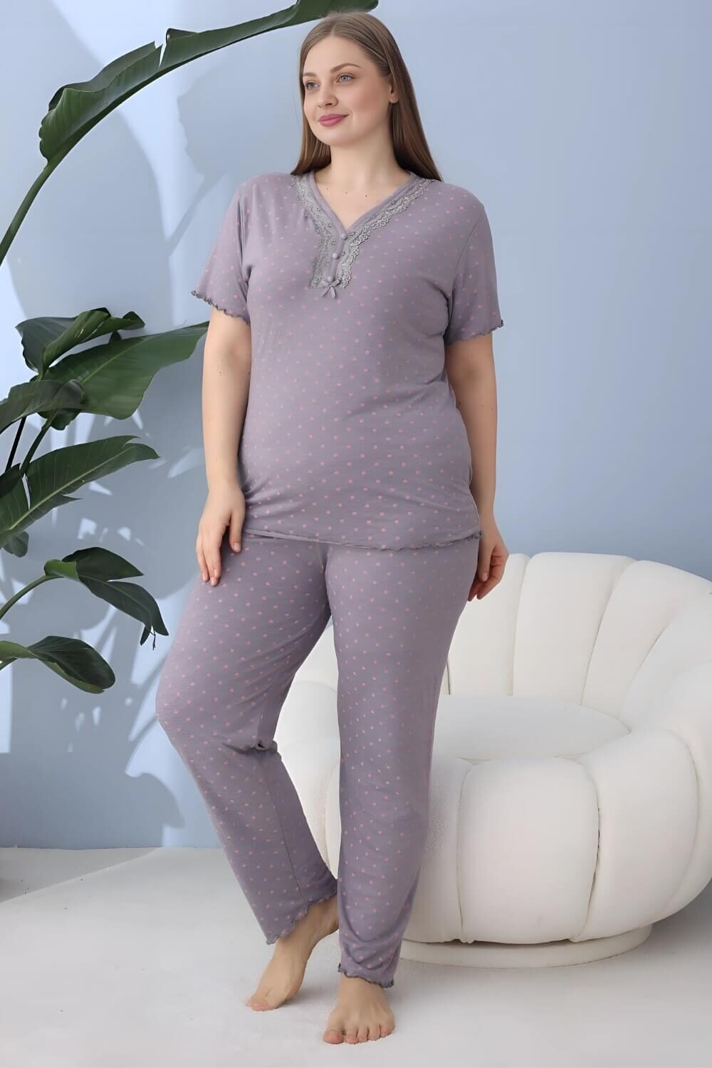 Γυναικεία Βαμβακερή Πιτζάμα Ανοιξιάτικη Φθινοπωρινή 11274 – ΛΙΛΑ, 4XL