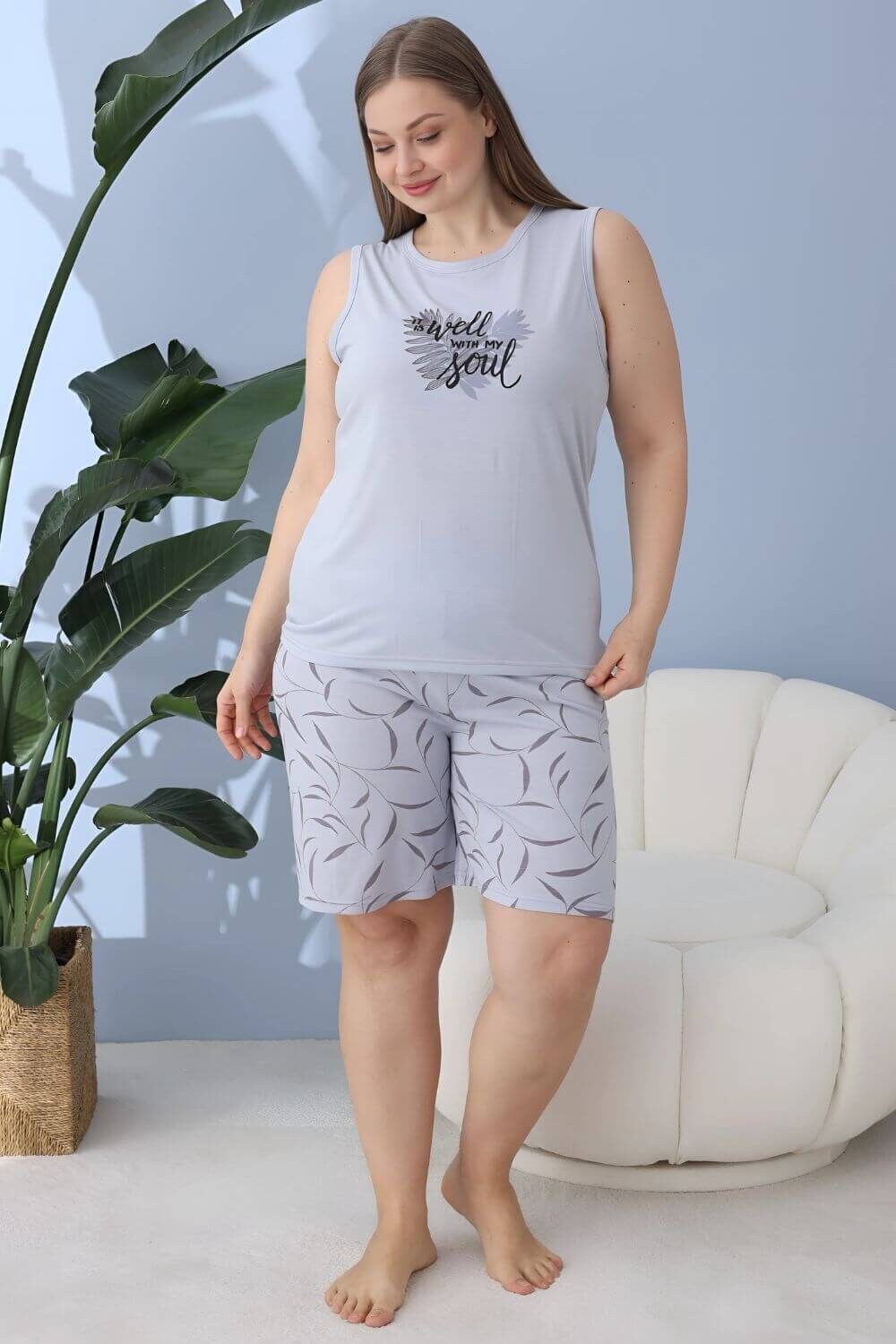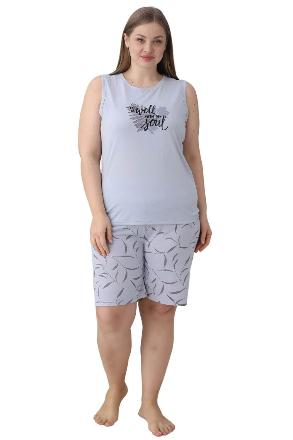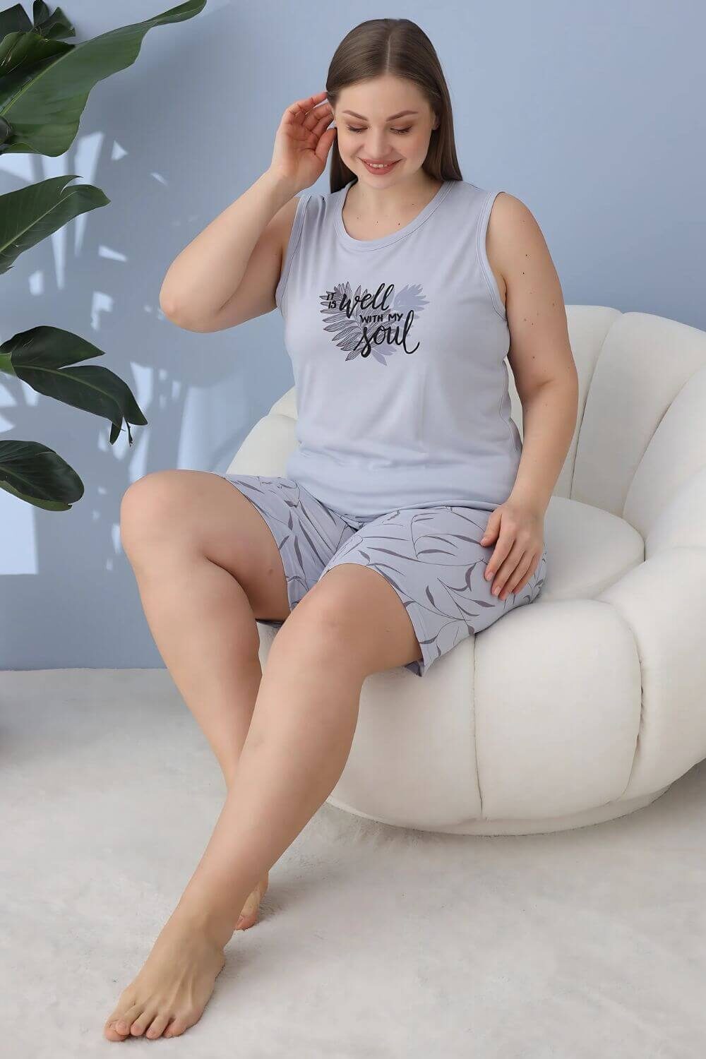 Γυναικεία πιτζάμα αμάνικη με σορτς 60114 – ΓΚΡΙ, XXL