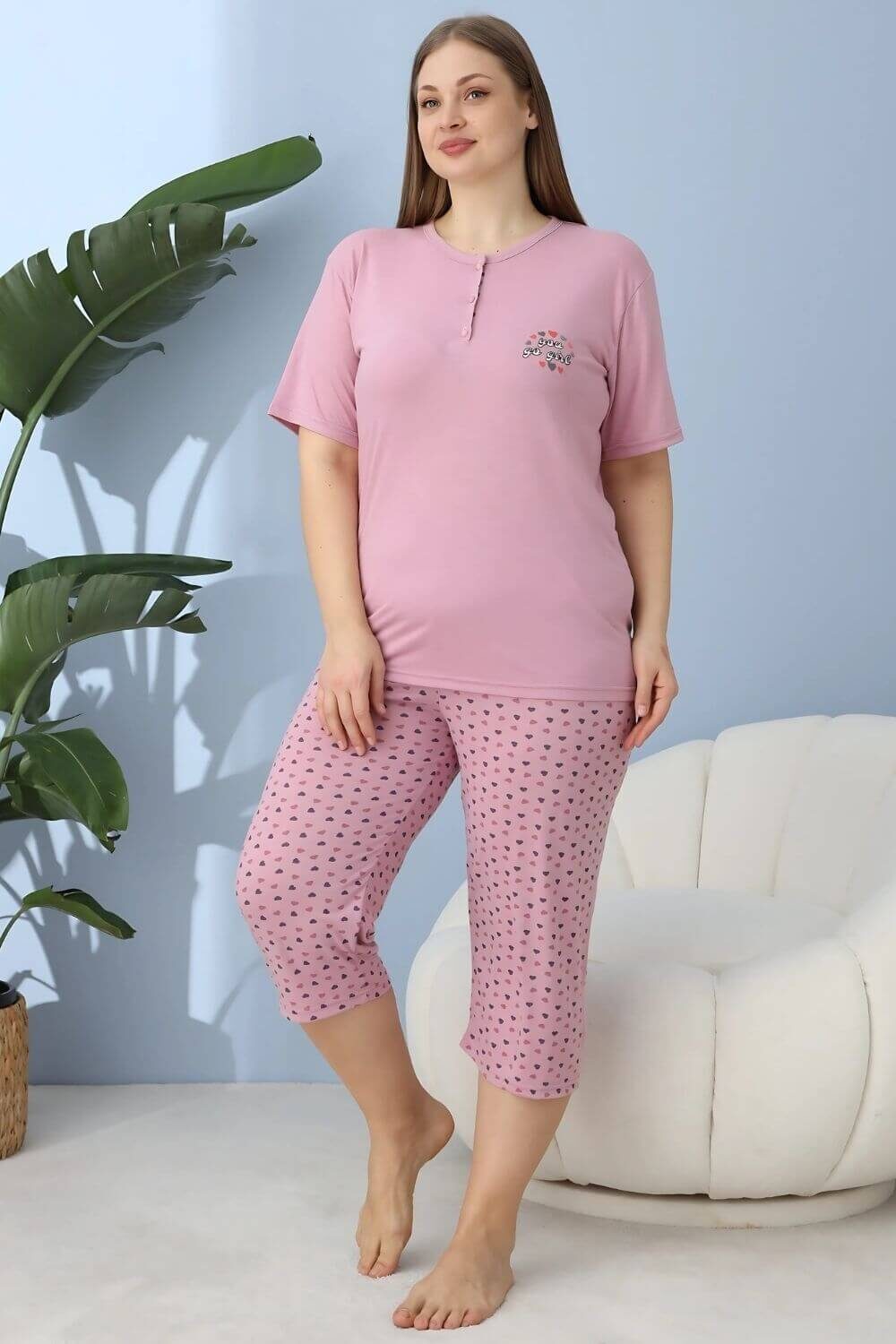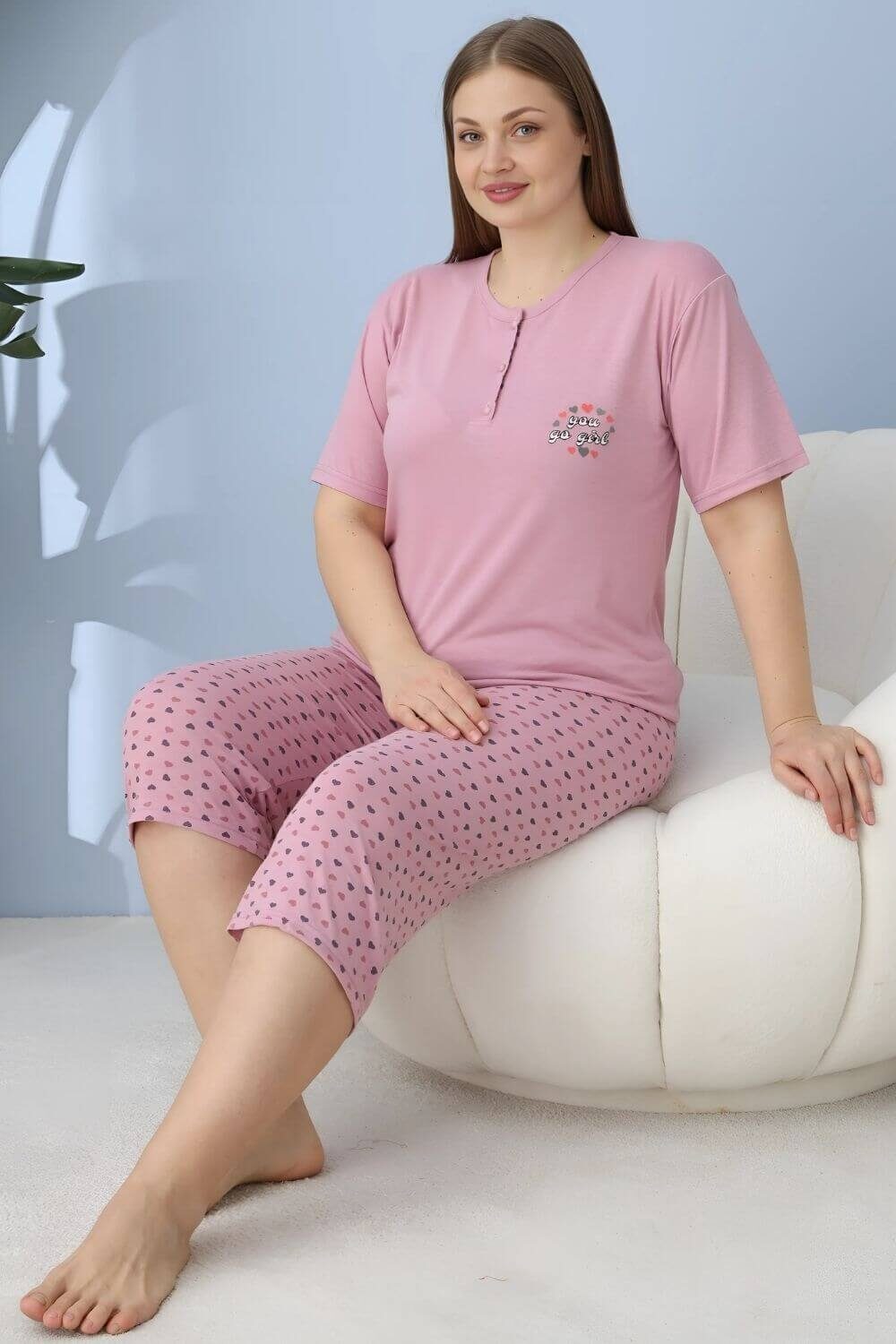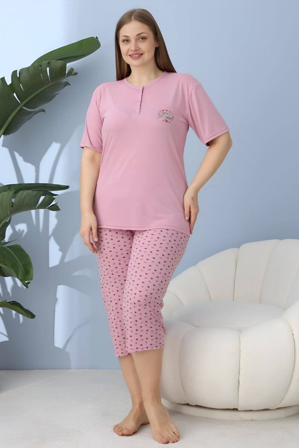 Γυναικεία πιτζάμα κάπρι με κοντό μανίκι 30142 – ΛΙΛΑ, 5XL