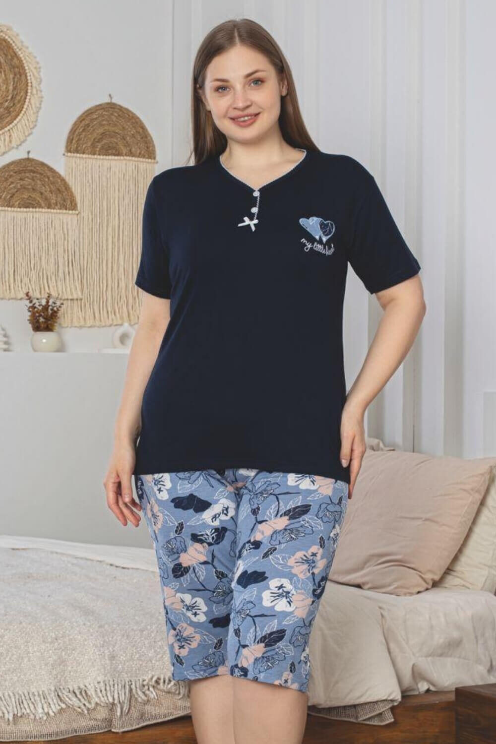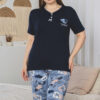 Γυναικεία πιτζάμα κάπρι με κοντό μανίκι D8446 – ΜΠΛΕ ΣΚΟΥΡΟ, XL