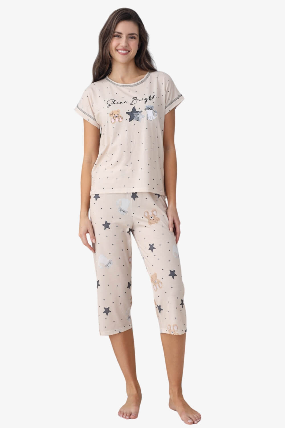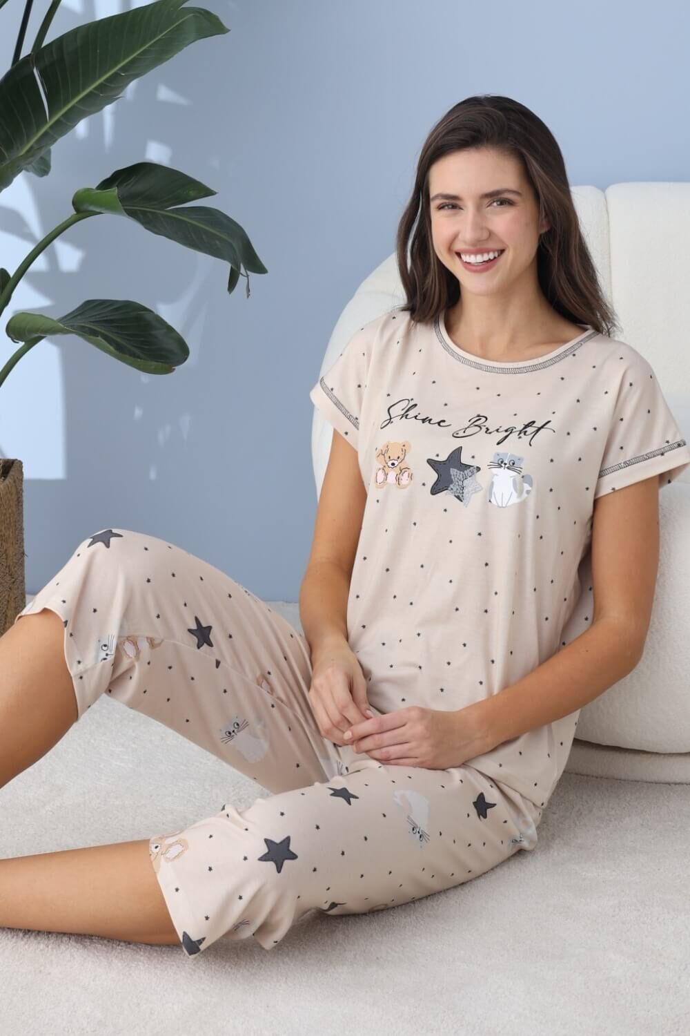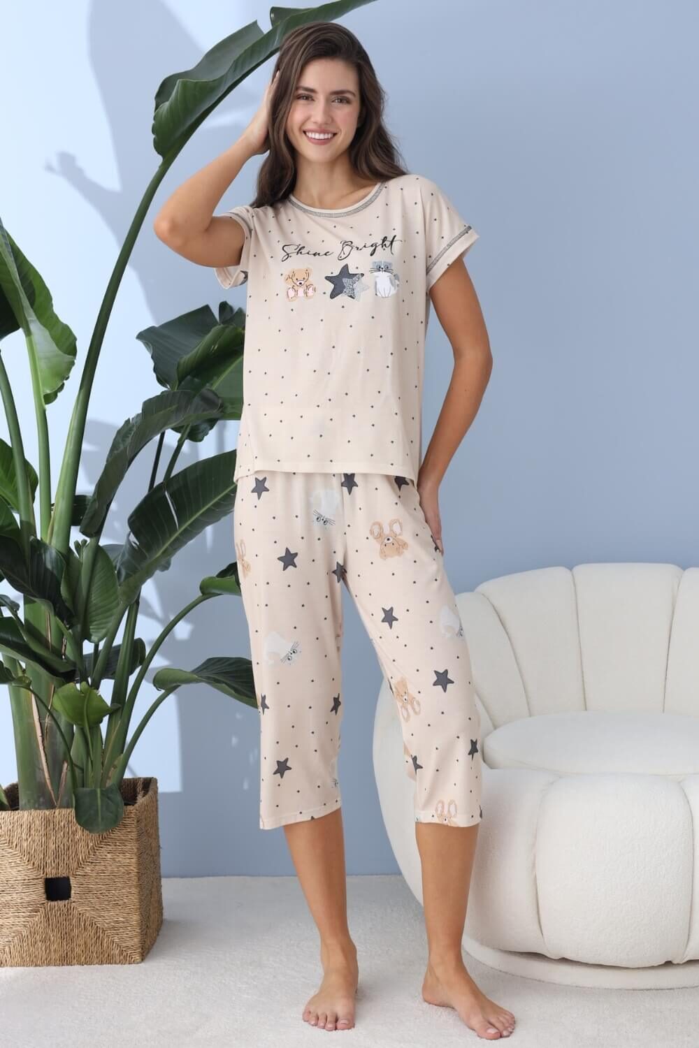 Γυναικεία πιτζάμα κάπρι με κοντό μανίκι 40033 – ΜΠΕΖ, XL