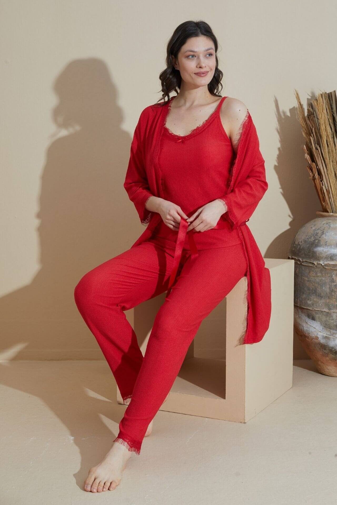 Γυναικεία Πιτζάμα Σετ 3τεμ. 10430 – ΚΟΚΚΙΝΟ, L