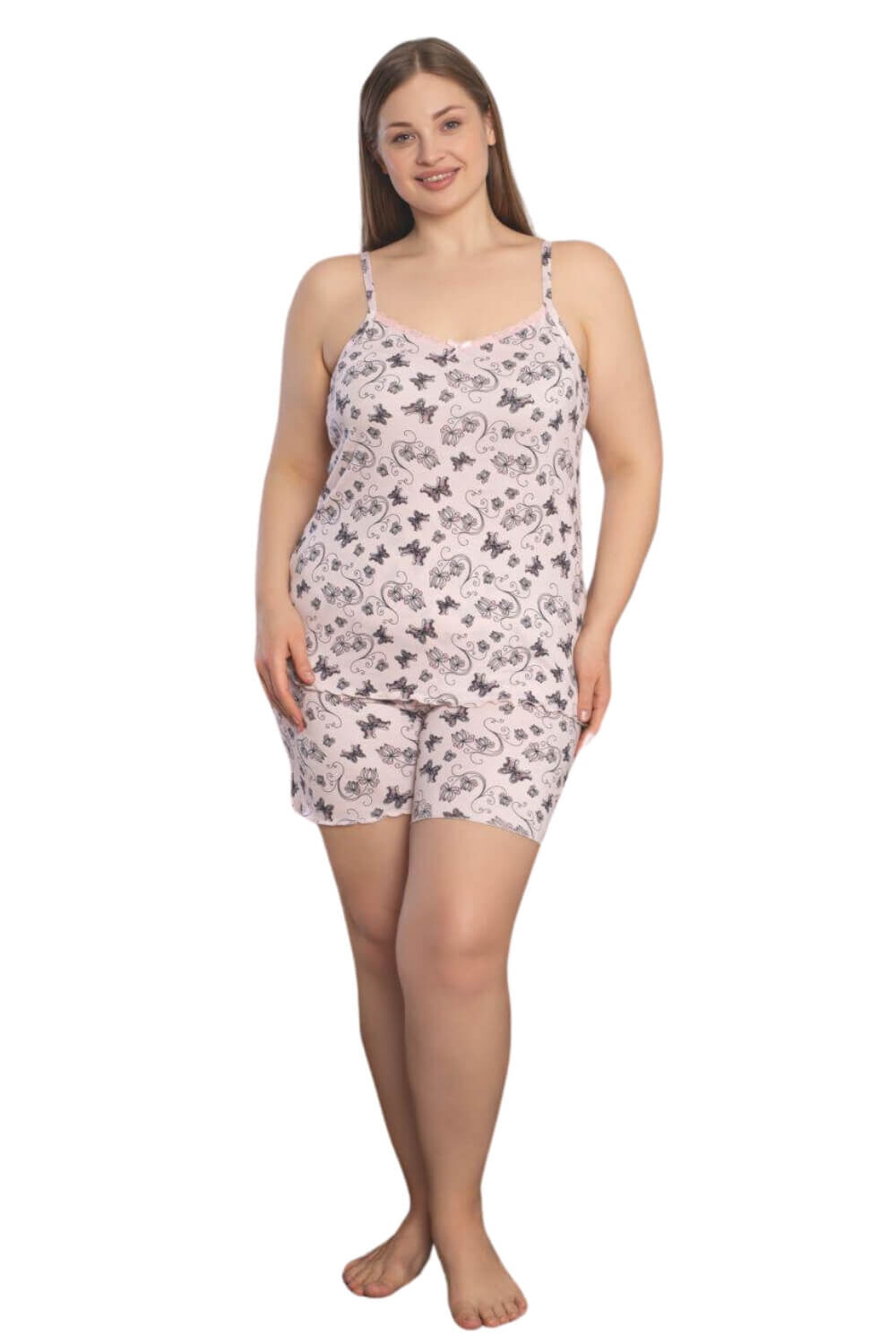 Γυναικεία πιτζάμα σορτς με τιράντα 8469 – ΡΟΖ ΠΟΥΔΡΑΣ, 4XL