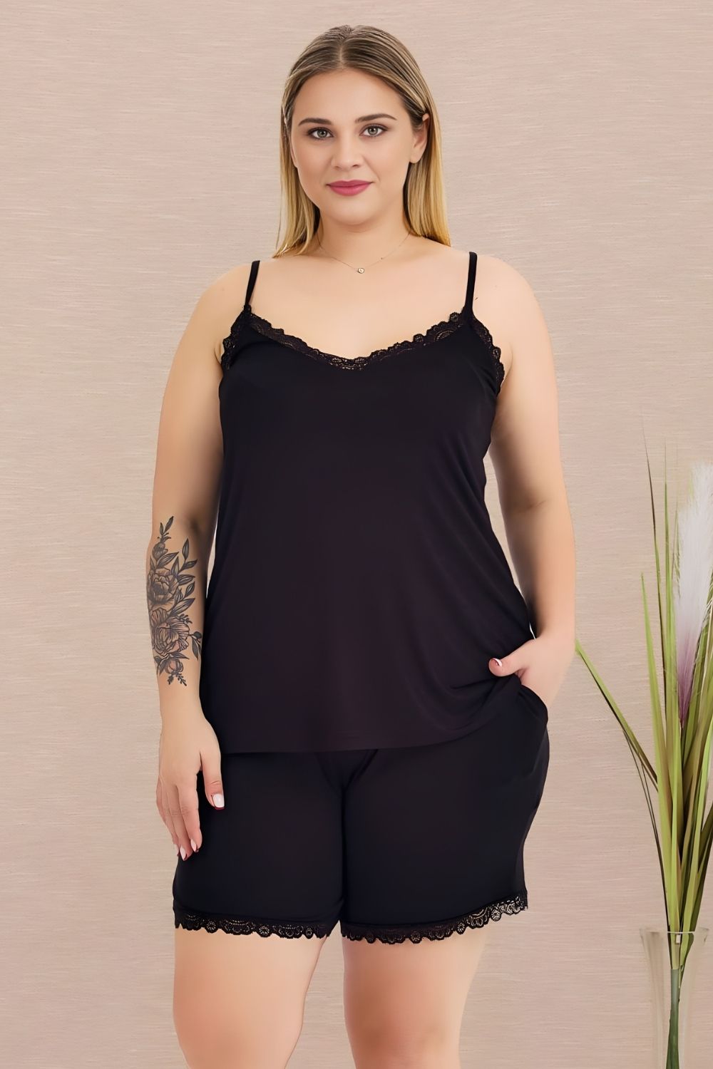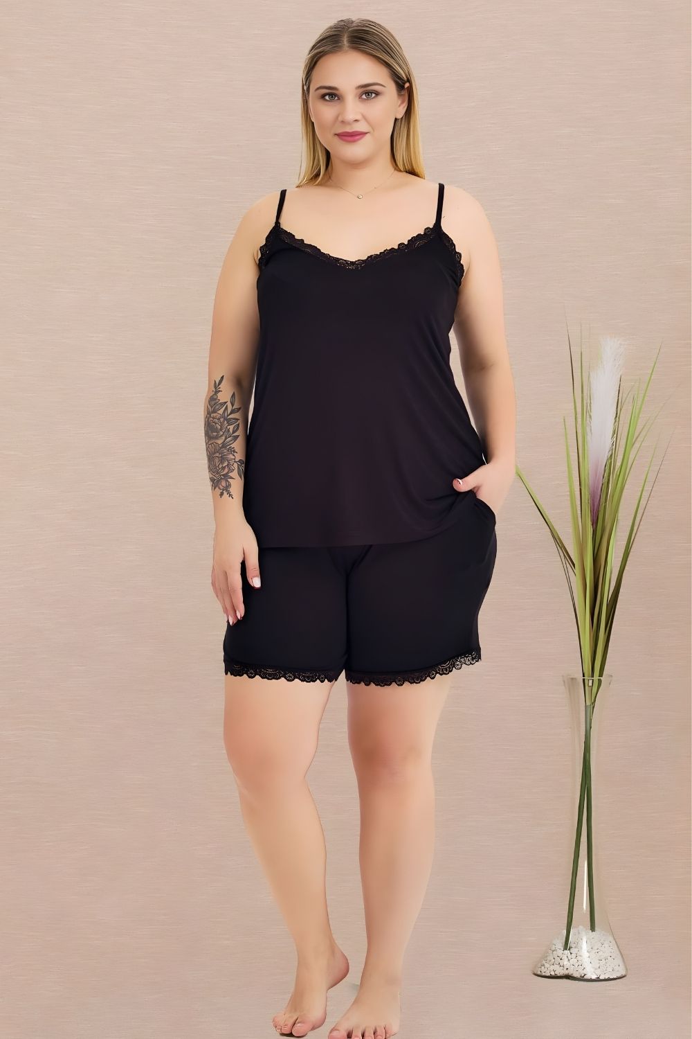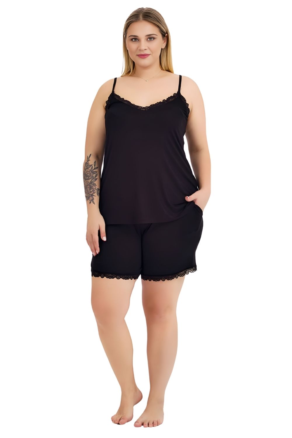 Γυναικεία Πιτζάμα Τιράντα Με Σορτς 10445 – ΜΑΥΡΟ, 4XL