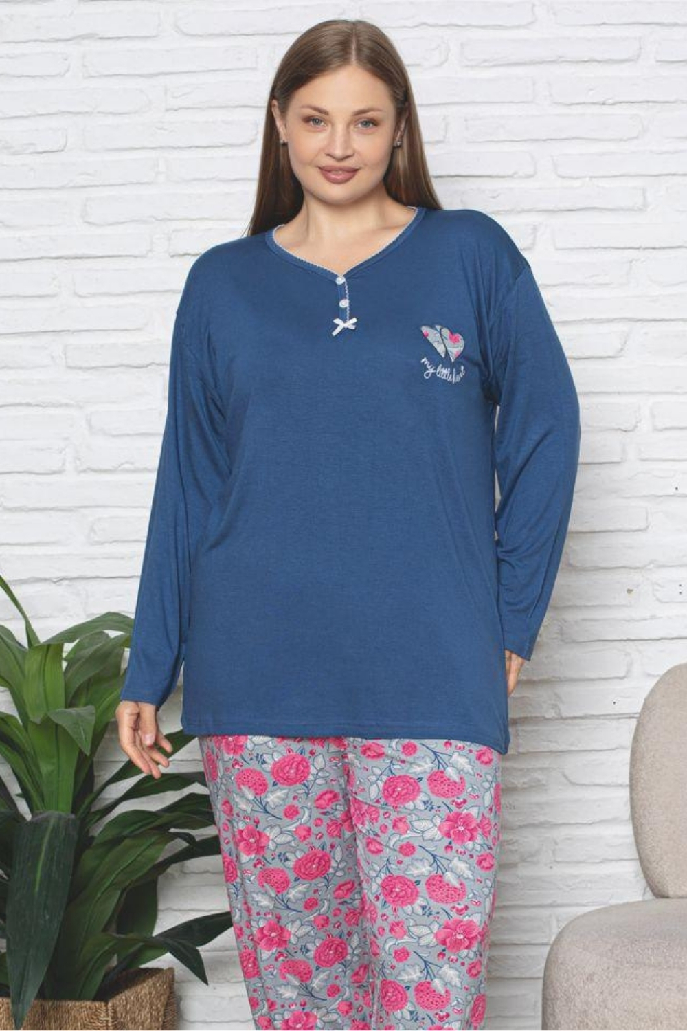 Γυναικεία Φθινοπωρινή Ανοιξιάτικη Πιτζάμα D8515 – ΜΠΛΕ, 3XL