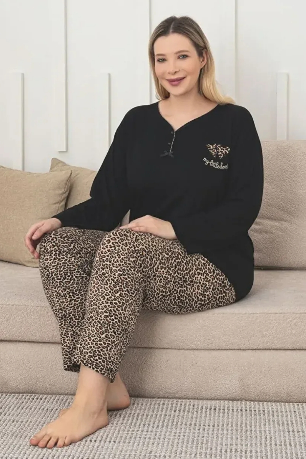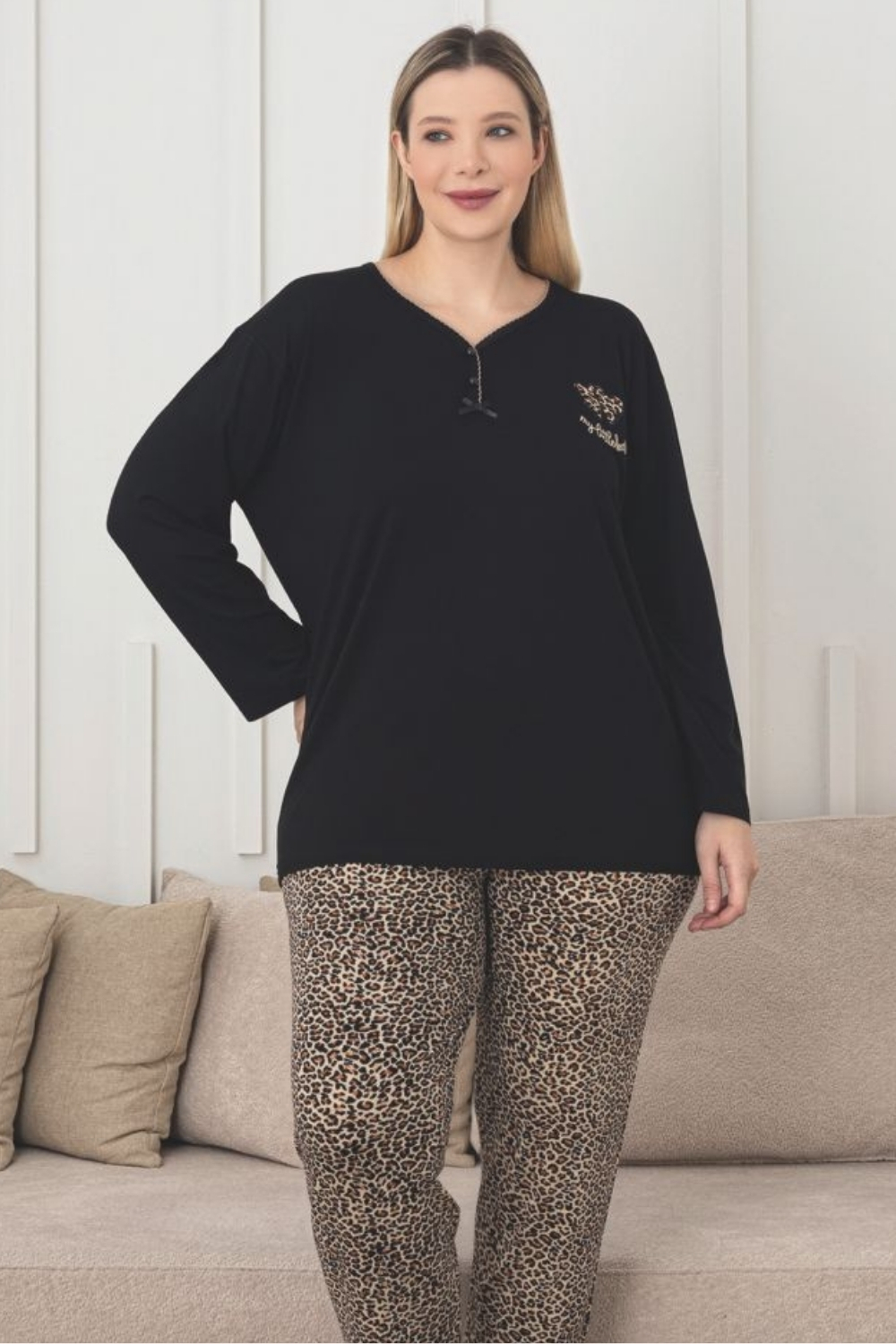 Γυναικεία Φθινοπωρινή Ανοιξιάτικη Πιτζάμα W8515 – ΜΑΥΡΟ, XXL