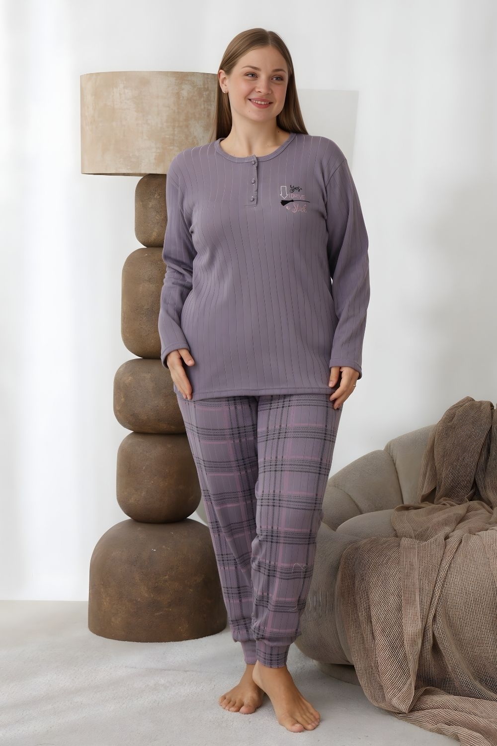 Γυναικεία Χειμωνιάτικη Πιτζάμα 0267 – ΓΚΡΙ, 3XL