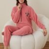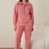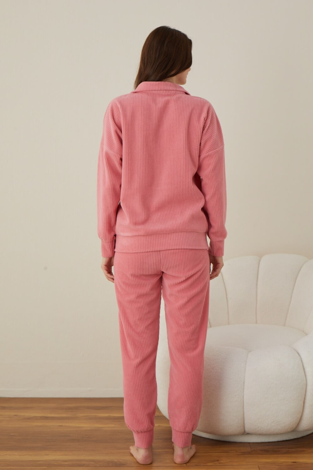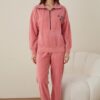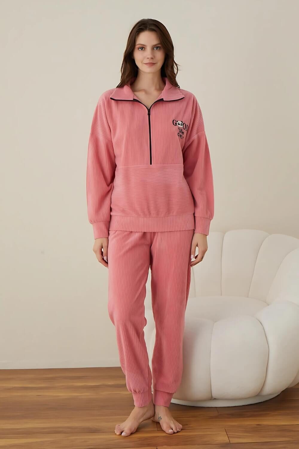 Πιτζάμα Γυναικεία Βαμβακερή Με Φερμουάρ D01005 – ΡΟΖ, XXL
