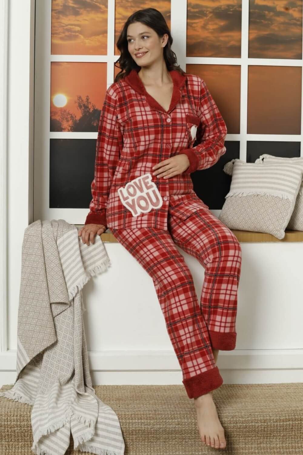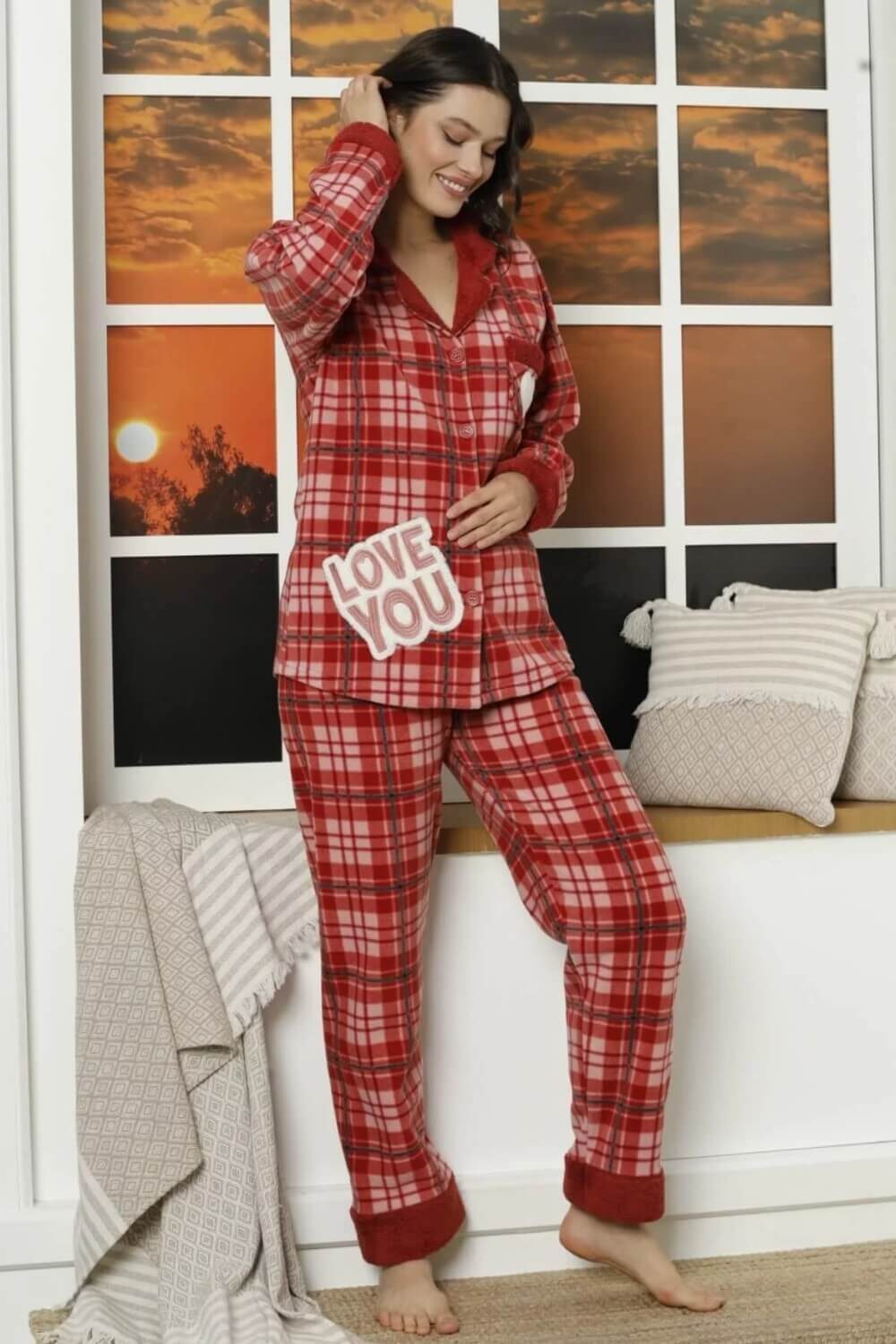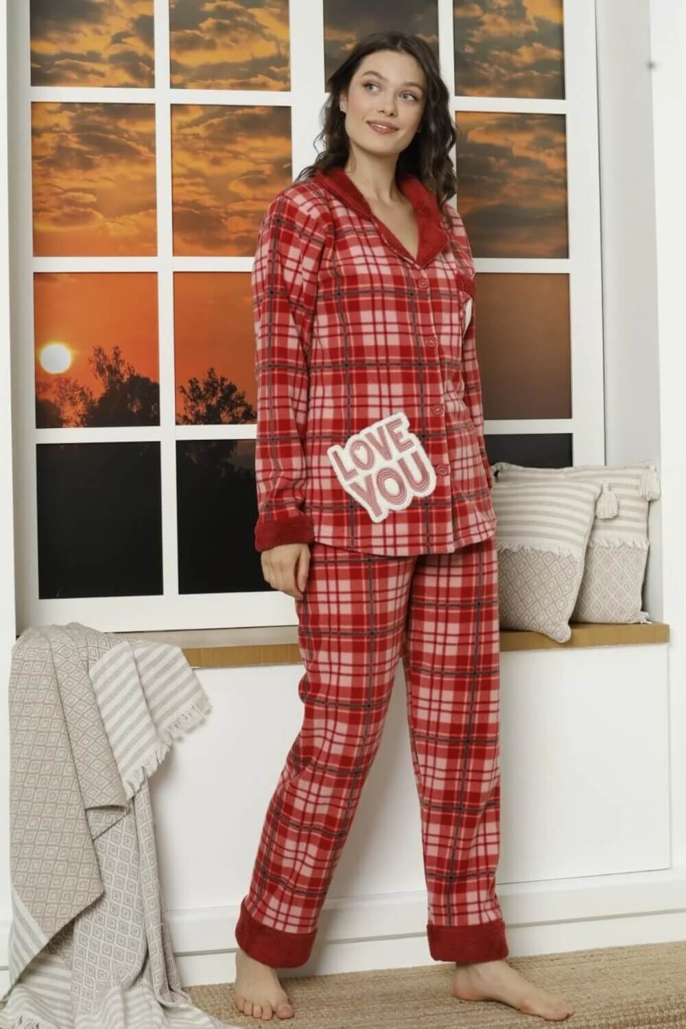 Πιτζάμα Γυναικεία Fleece Με Κουμπιά W21036 – ΠΟΛΥΧΡΩΜΟ, M