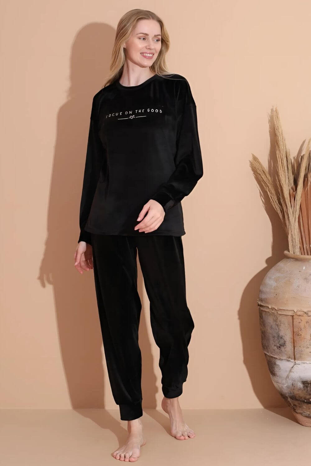 Πιτζάμα Γυναικεία Homewear Βελουτέ 3076 – ΜΑΥΡΟ, L