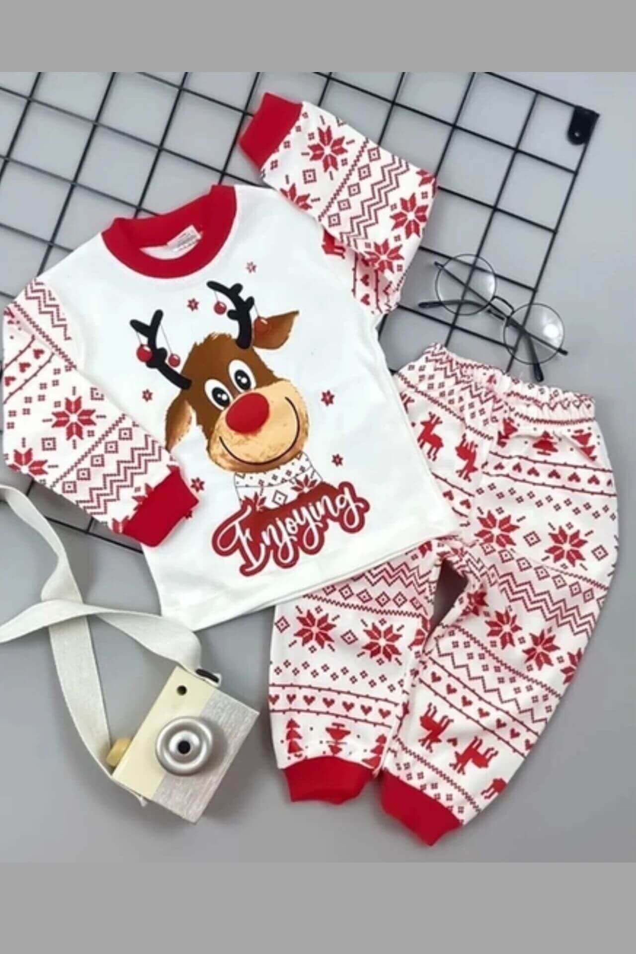 Πιτζάμα Παιδική Χαρούμενος Τάρανδος D1006 – ΚΟΚΚΙΝΟ, 1 Ετών