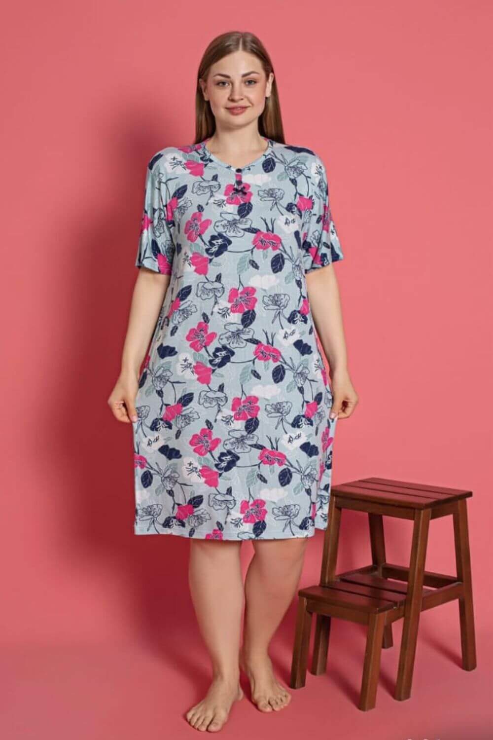 Φόρεμα Homewear Κοντό Μανίκι D5159 – ΠΟΛΥΧΡΩΜΟ, 3XL