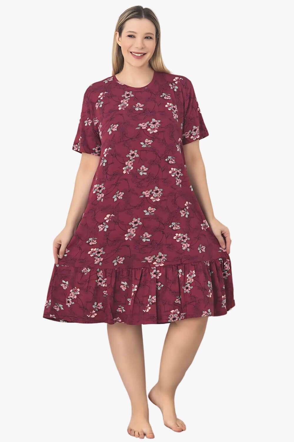 Φόρεμα Homewear Κοντό Μανίκι Q5242 – ΠΟΛΥΧΡΩΜΟ, 4XL