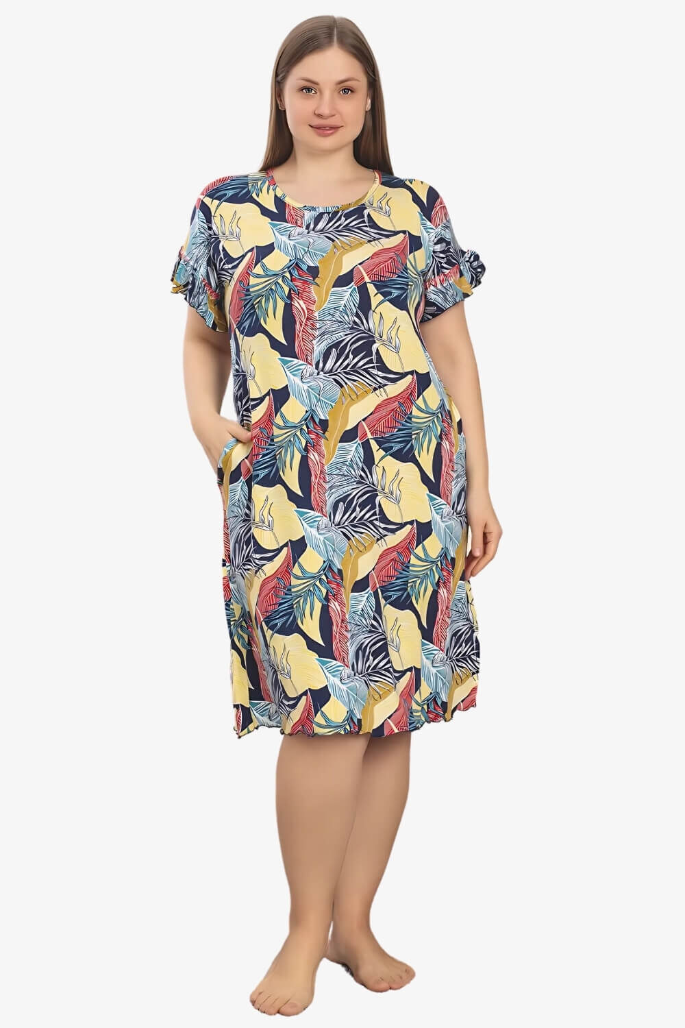 Φόρεμα Homewear Κοντό Μανίκι W5247 – ΠΟΛΥΧΡΩΜΟ, 4XL